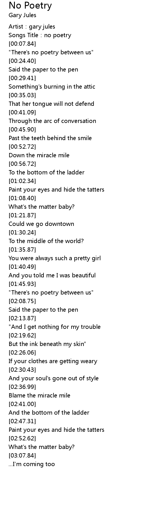 | [02:06.56] | "There's no poetry between us" |