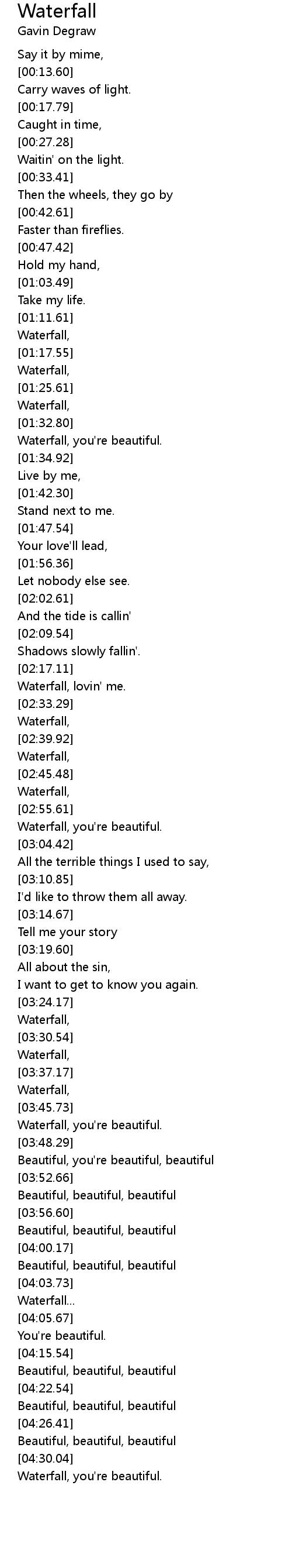 Waterfall, lovin' me. |