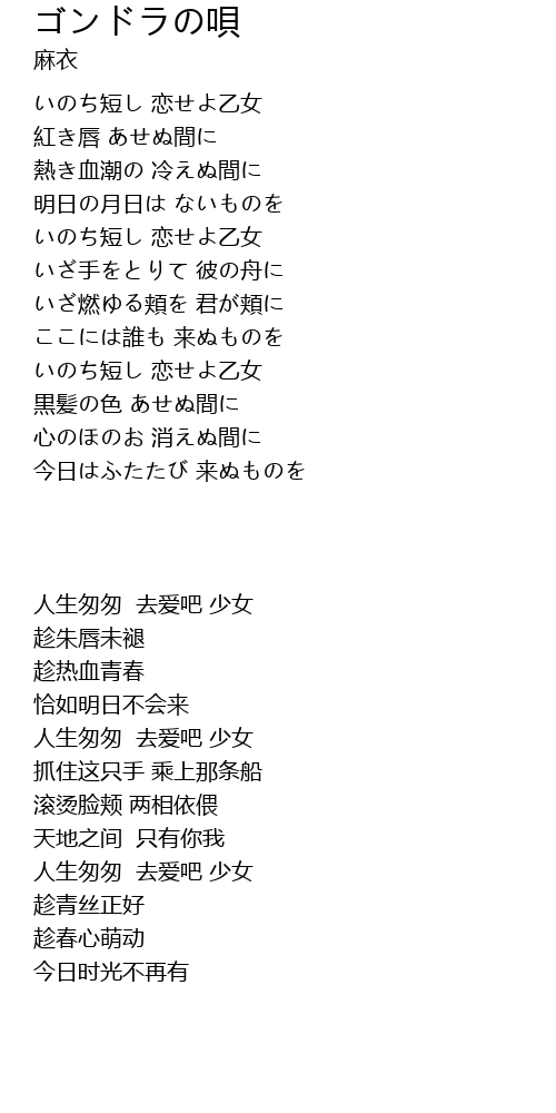 いのち短し 恋せよ乙女 |