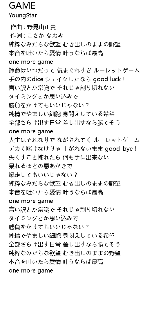 | [00:37.860] | 運命はいつだって 気まぐれすぎ ルーレットゲーム |