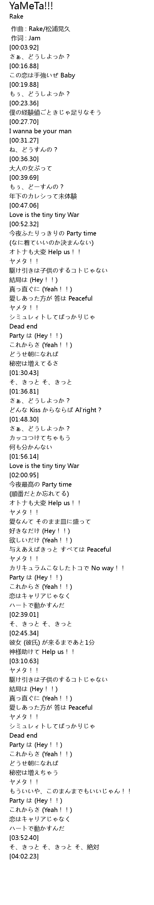 | [03:31.58] | Party は (Hey!!) |