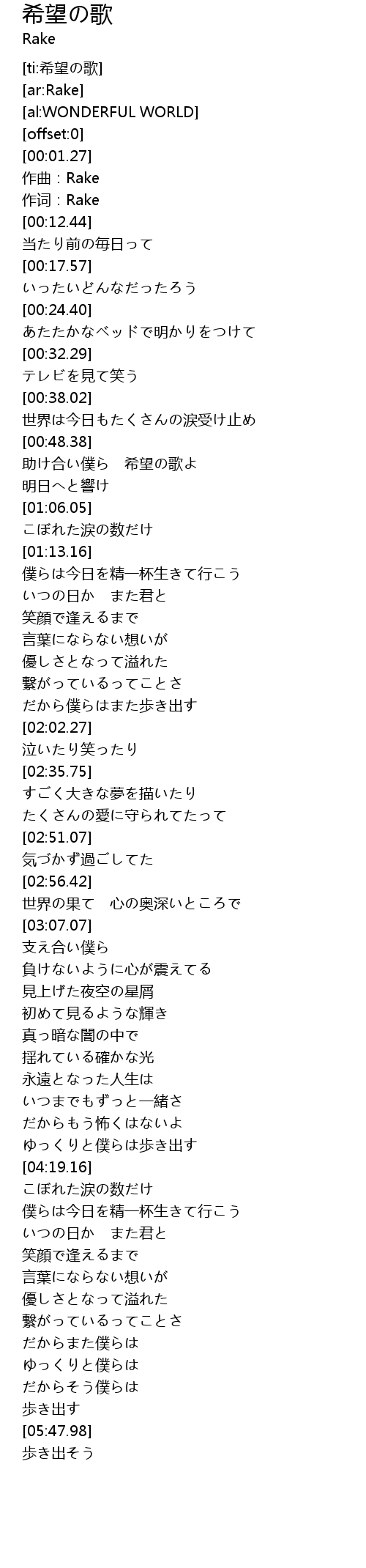 | [00:51.33] | 助け合い僕ら 希望の歌よ |