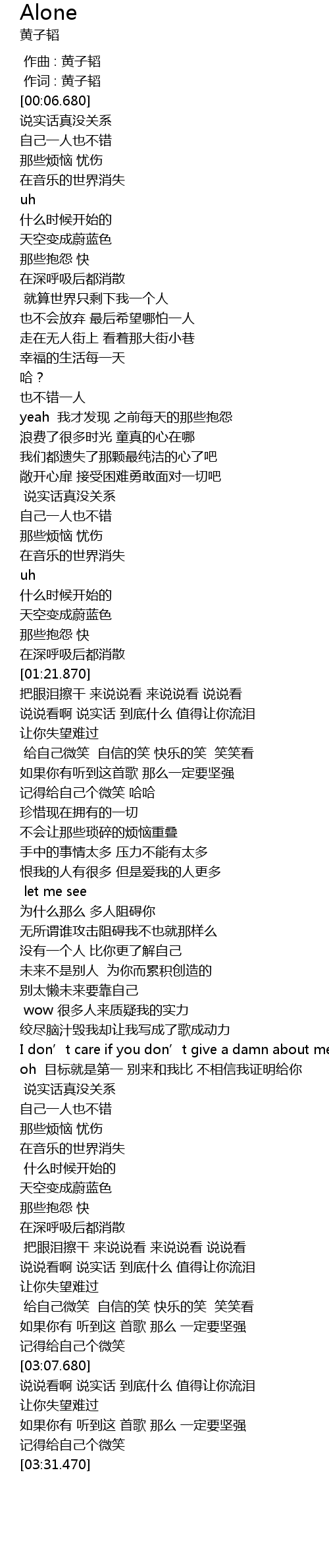 | [00:14.470] | zì jǐ yī rén yě bù cuò |