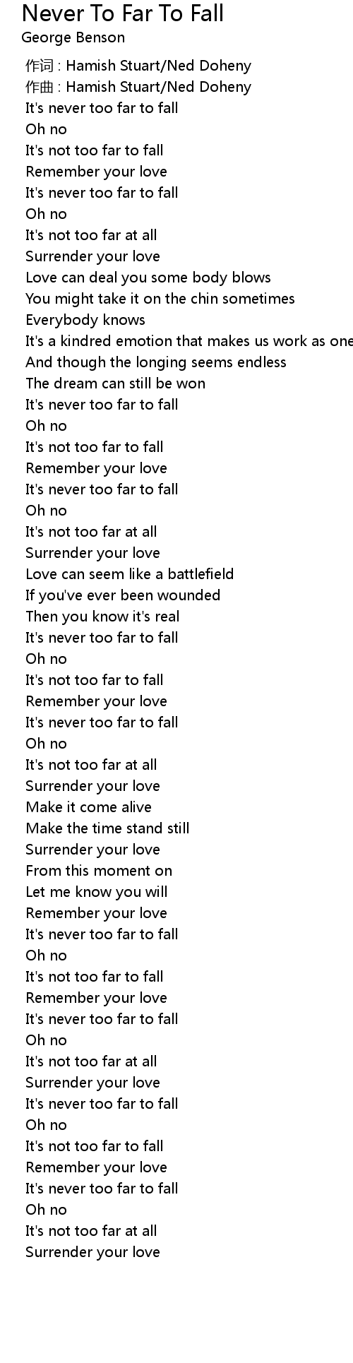 | [00:00.000] | zuò cí : Hamish Stuart Ned Doheny |