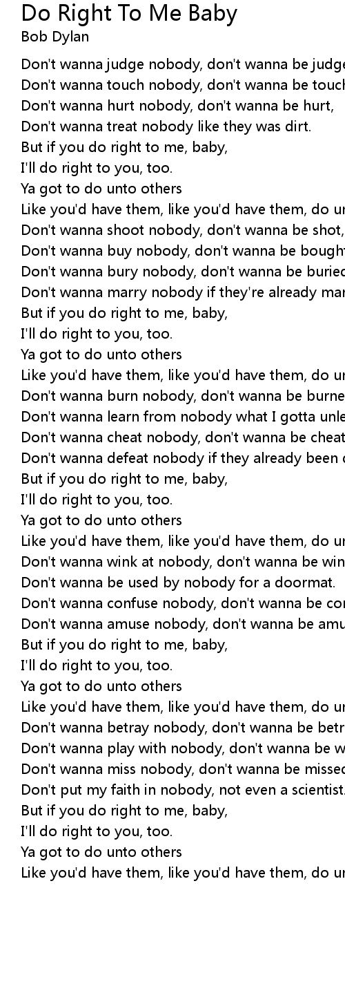 Don't wanna cheat nobody, don't wanna be cheated, |