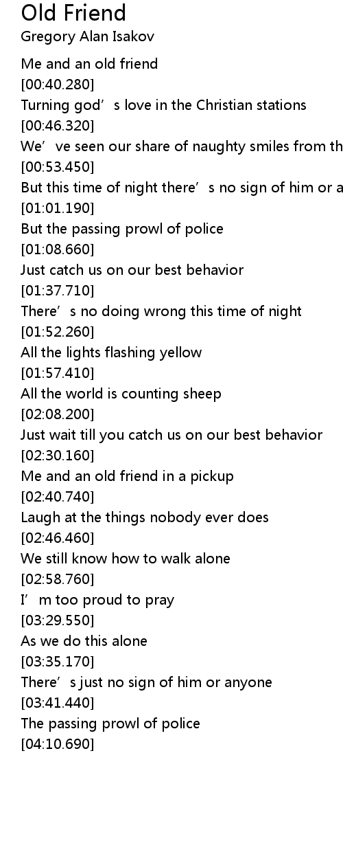 | [02:23.740] | Just wait till you catch us on our best behavior |