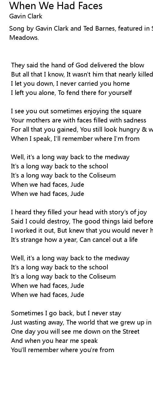 Song by Gavin Clark and Ted Barnes, featured in Somers Town a film by Shane Meadows. |