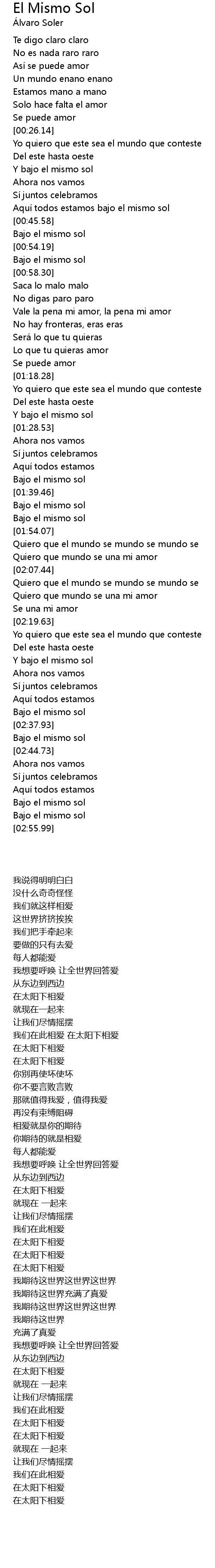 | [02:53.17] | Bajo el mismo sol |