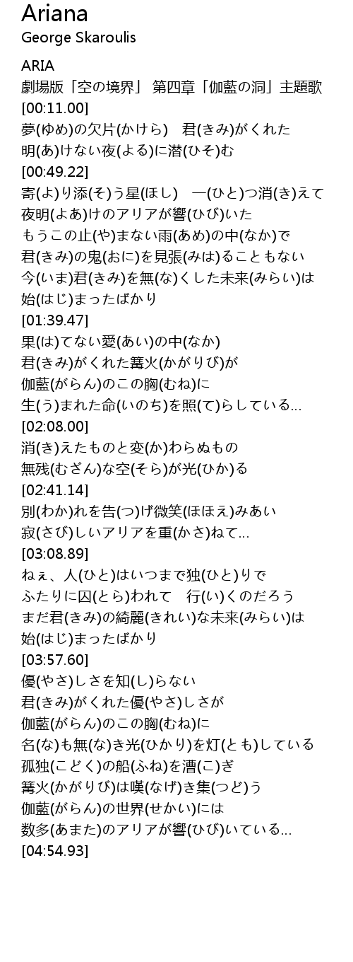 | [00:08.00] | 劇場版「空の境界」 第四章「伽藍の洞」主題歌 |