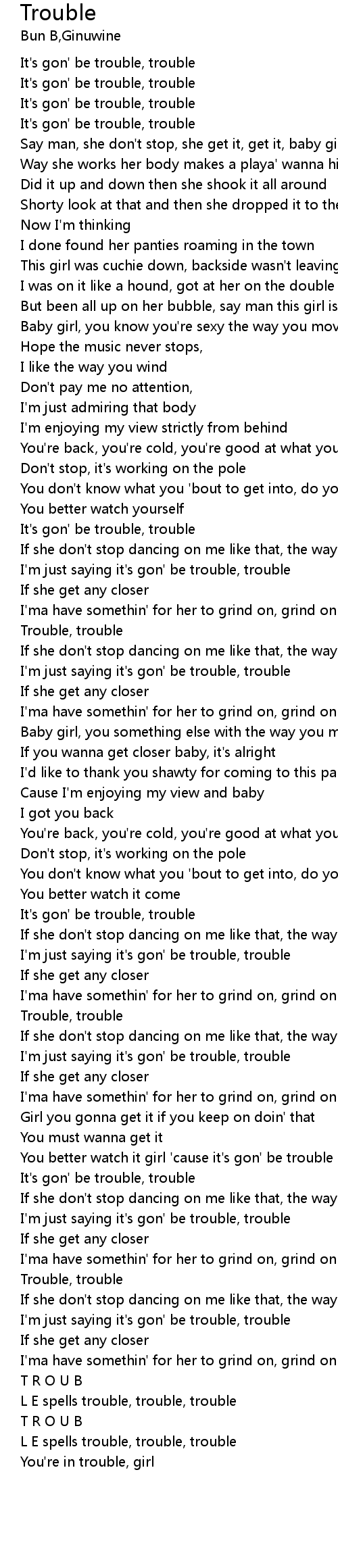 | It's gon' be trouble, trouble | |