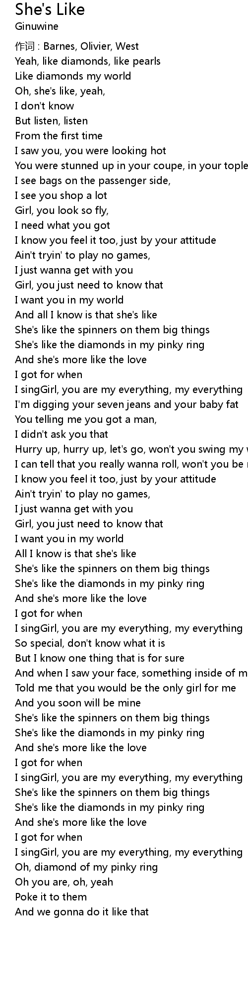 | She' s like the diamonds in my pinky ring | |