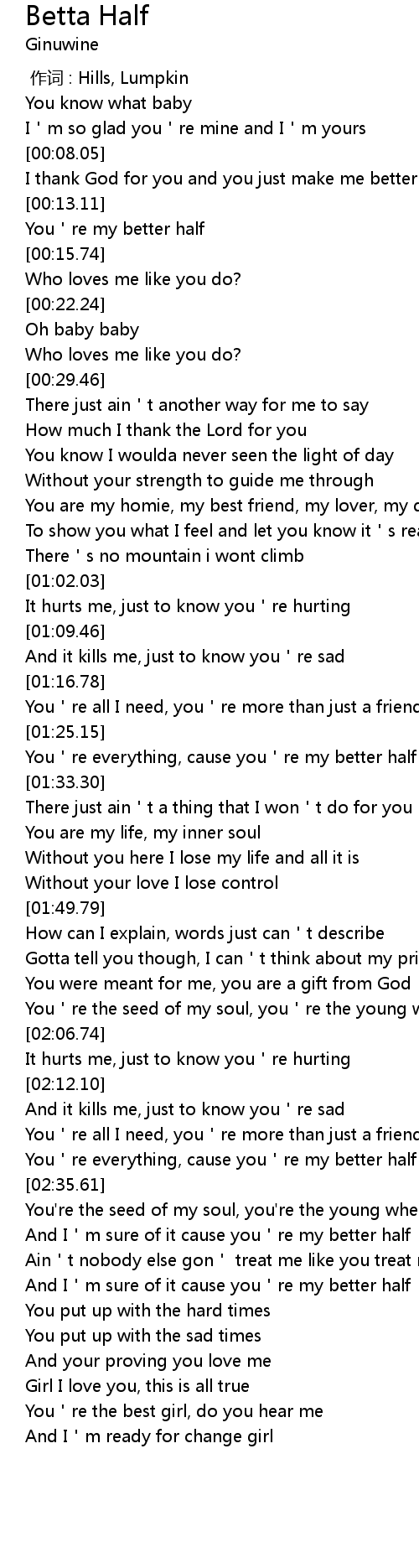 | [02:42.12] | And I m sure of it cause you re my better half |