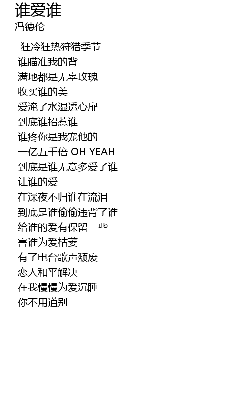 | 歌曲 | 谁爱谁 |