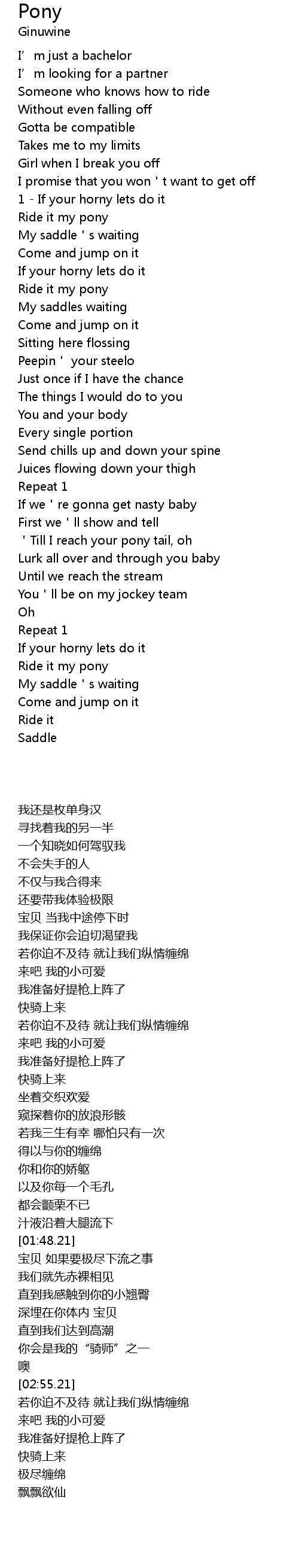 | [00:57.21] | Ride it my pony |