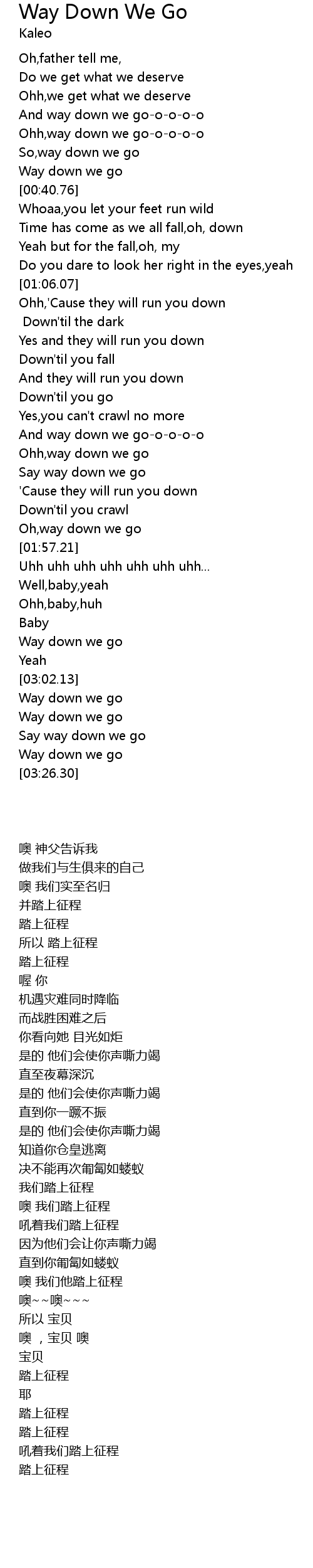 Ohh,way down we go-o-o-o-o |