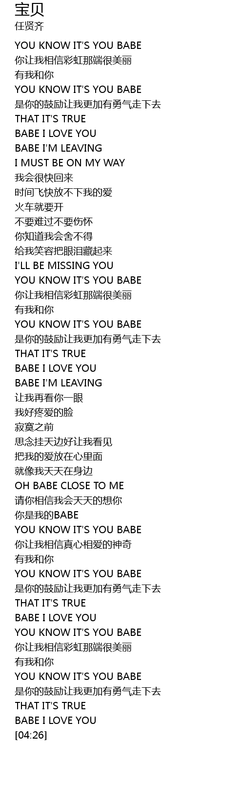 | [03:32] | YOU KNOW IT' S YOU BABE |