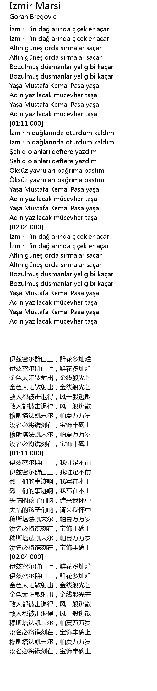 | [02:32.500] | İzmir‘in dağlarında çiçekler açar |