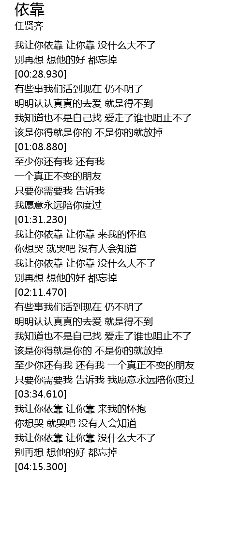 | [03:56.250] | 我让你依靠 让你靠 没什么大不了 |