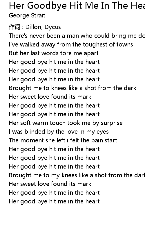 | 歌曲 | Her Goodbye Hit Me In The Heart |