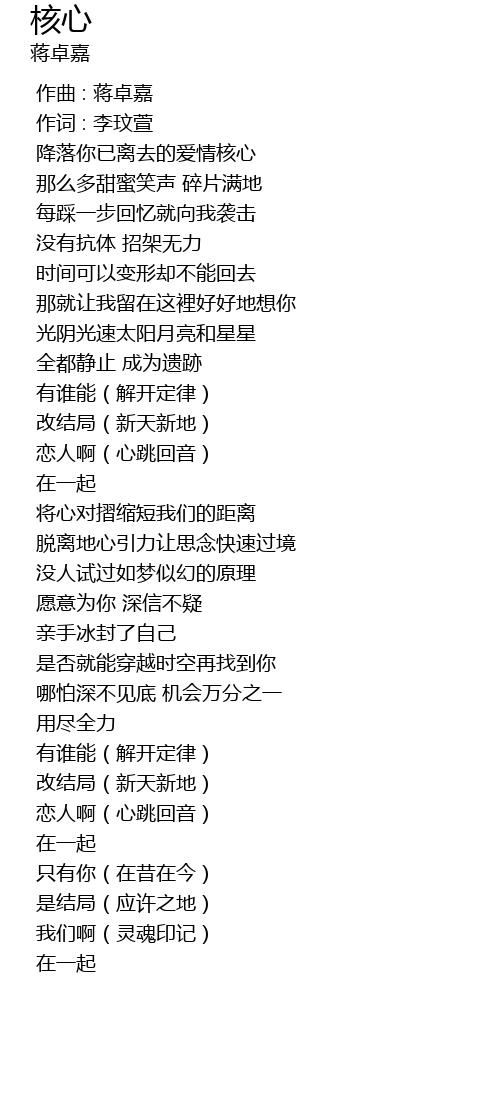 | 歌曲 | 核心 |