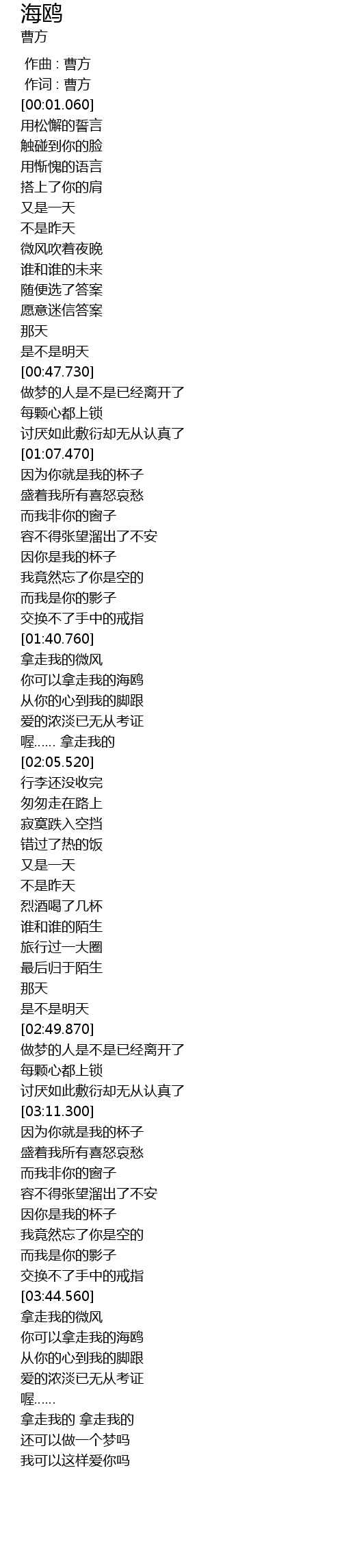 | [03:48.040] | 你可以拿走我的海鸥 |