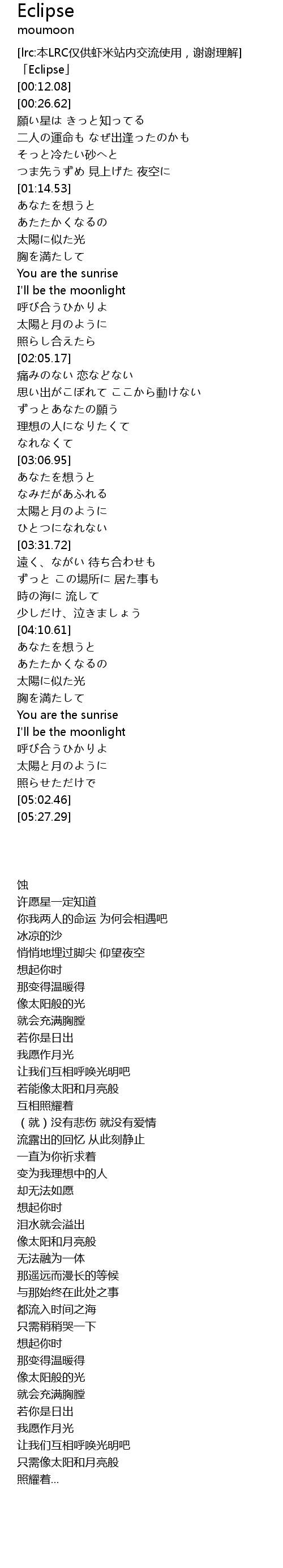 | [01:52.29] | 太陽と月のように |