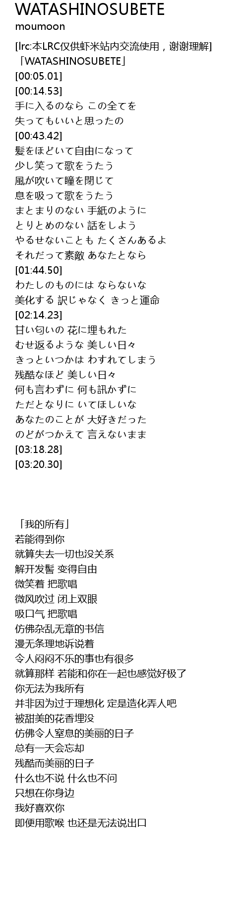 | [00:00.66] | 「我的所有」 |