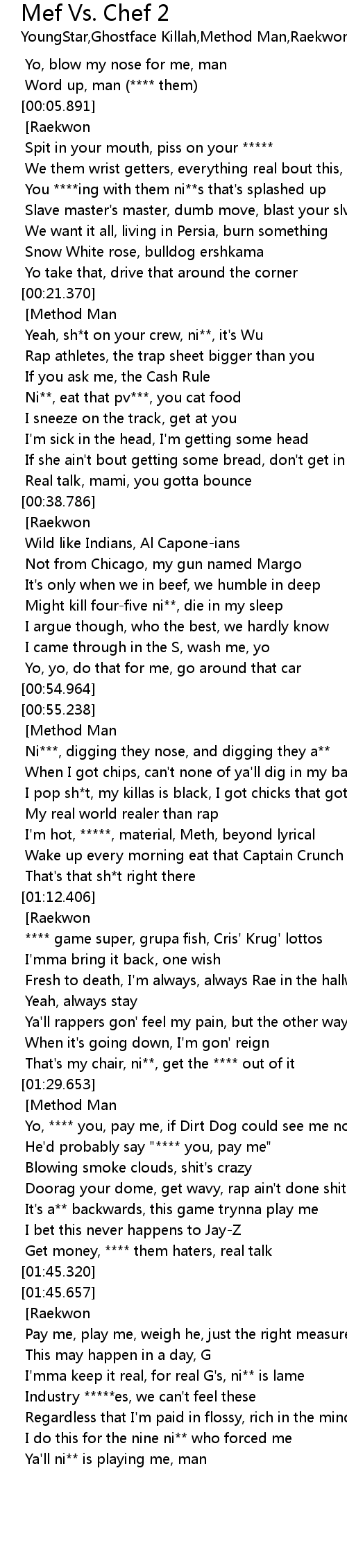 | [00:23.158] | Yeah, sh*t on your crew, ni**, it's Wu |