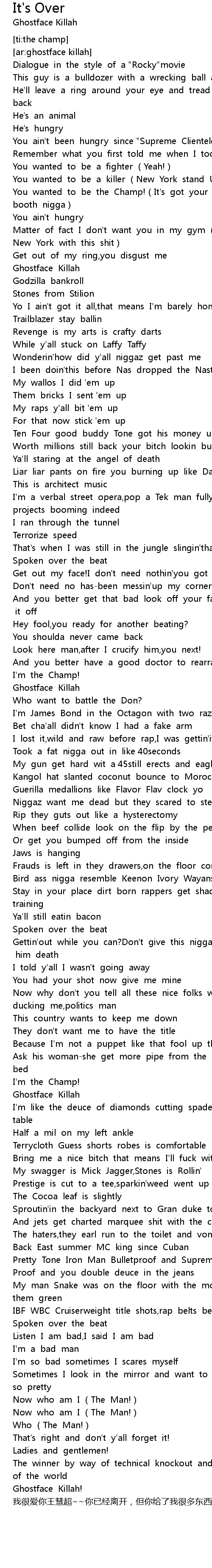 | [00:20.92] | You wanted to be the Champ!(It's got your boy in the booth nigga) |