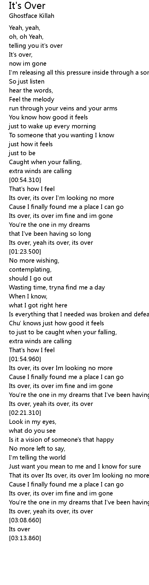 That its over Its over, its over Im looking no more |