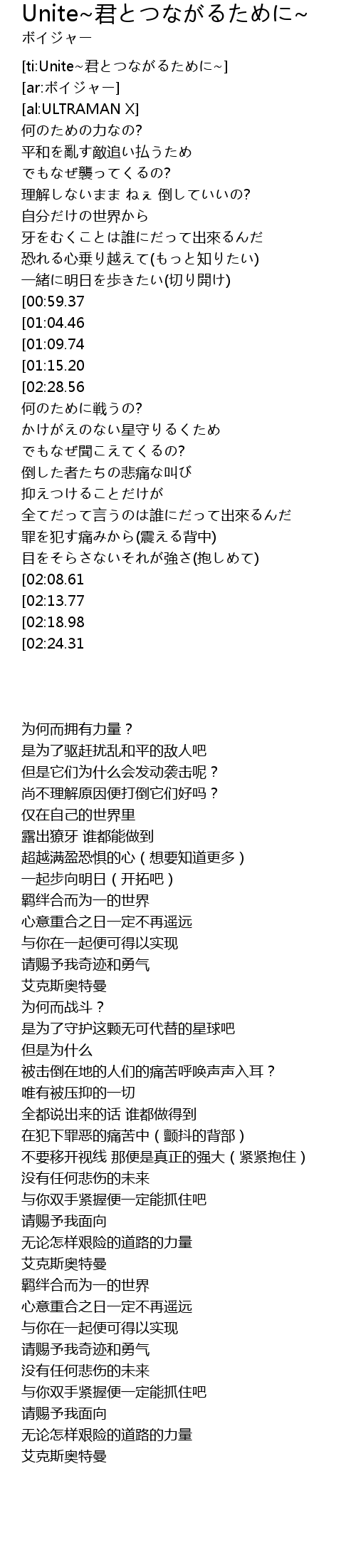| [03:34.77][02:28.56][01:19.53] | ウルトラマンX |