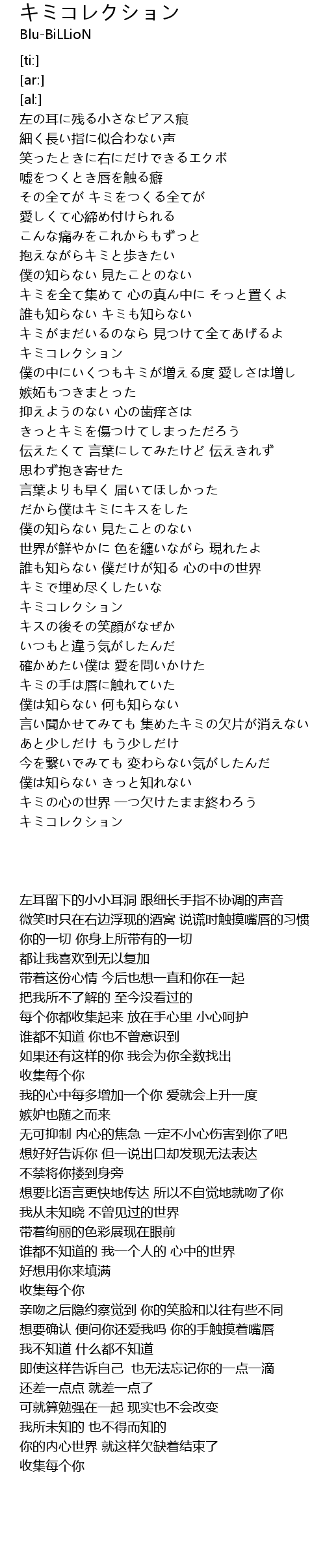 | [01:12.69] | キミがまだいるのなら 見つけて全てあげるよ |