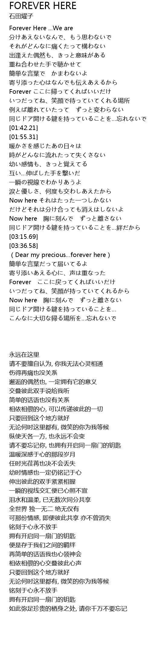 | [03:57.39] | Forever ここに戻ってくればいいだけ |