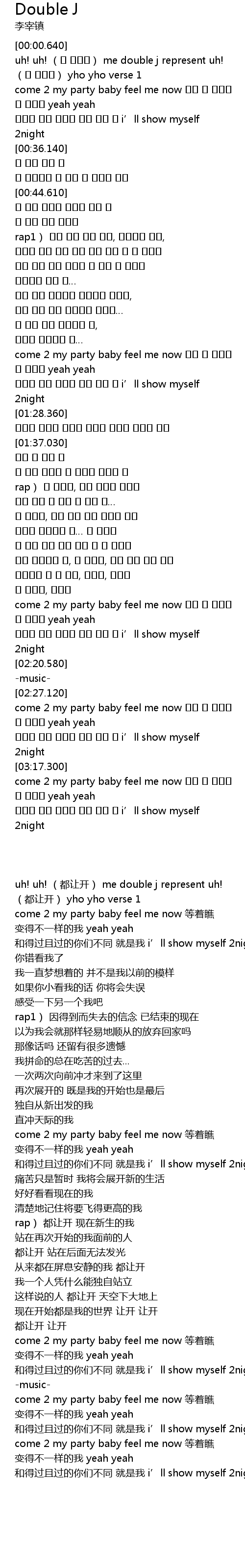 | [03:01.510] | come 2 my party baby feel me now 等着瞧 |