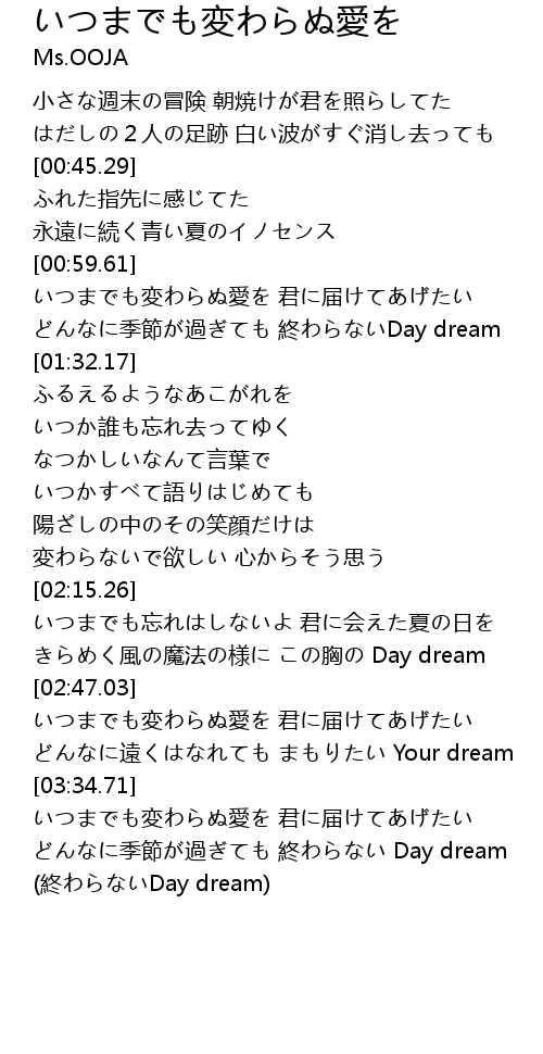 | [03:49.86] | どんなに季節が過ぎても 終わらない Day dream |