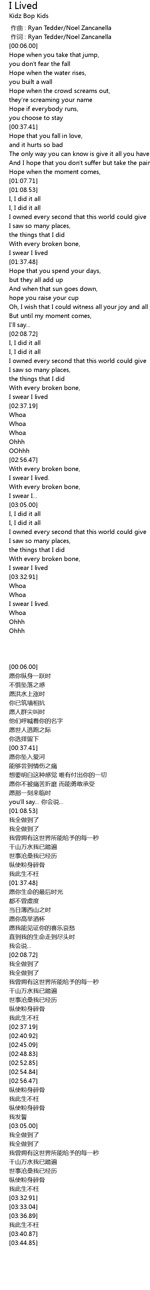 | 歌曲 | I Lived |