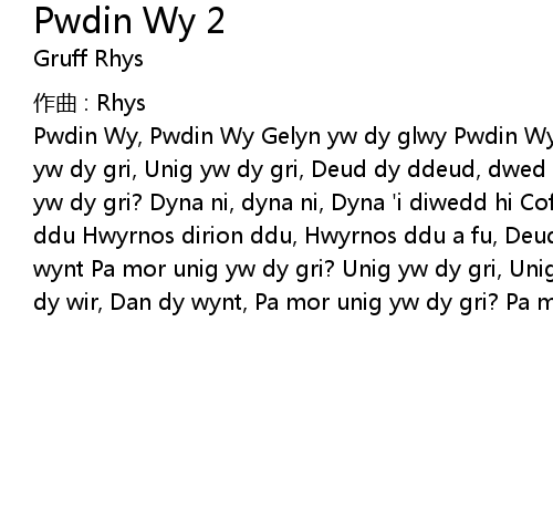 | 歌曲 | Pwdin Wy 2 |