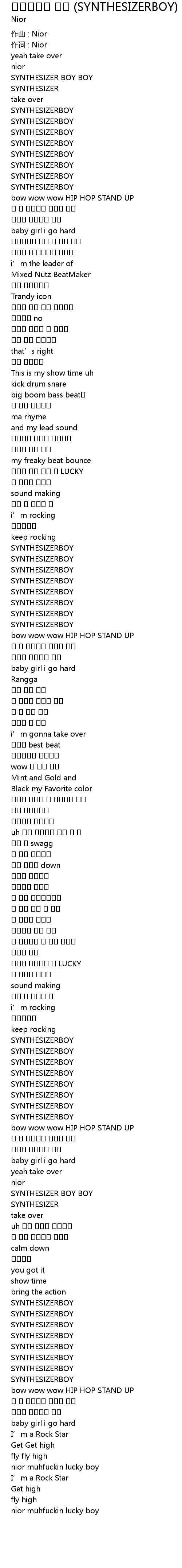 | 歌曲 | 신디사이져 보이 (SYNTHESIZERBOY) |