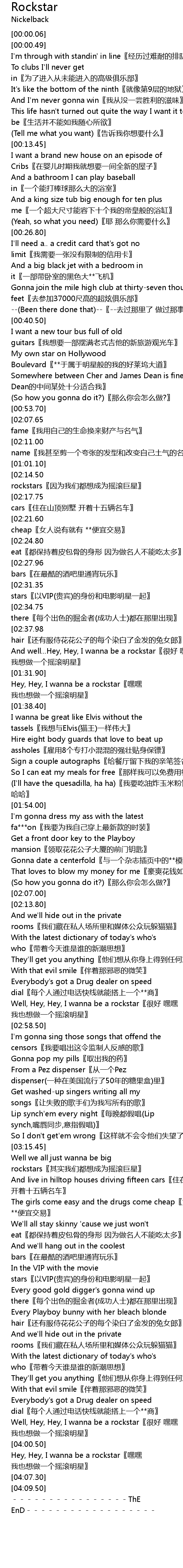 | [02:54.50] | Well, Hey, Hey, I wanna be a rockstar〖很好 嘿嘿 我也想做一个摇滚明星〗 |