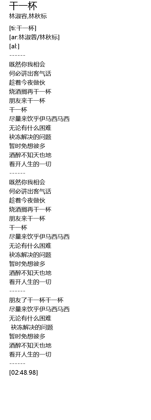 | [02:15.35] | 朋友了干一杯干一杯 |