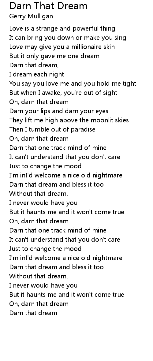 Darn that dream and bless it too |