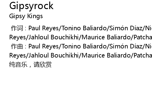 | [00:01.000] | 作曲 : Paul Reyes/Tonino Baliardo/Simón Díaz/Nicolas Reyes/Canut Reyes/Jahloul Bouchikhi/Maurice Baliardo/Patchai Reyes |