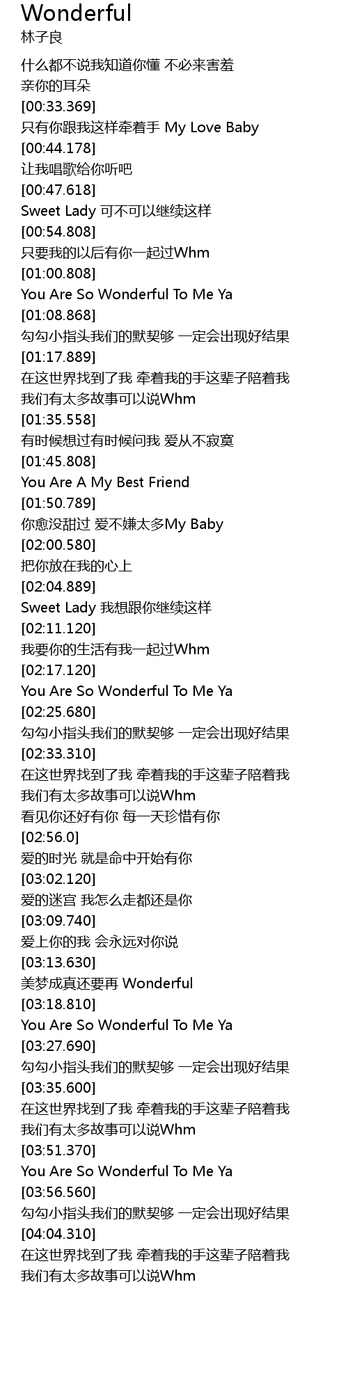 | [02:20.810] | You Are So Wonderful To Me Ya |