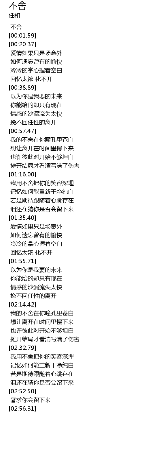 | [00:57.66] | 我的不舍在你瞳孔里苍白 |