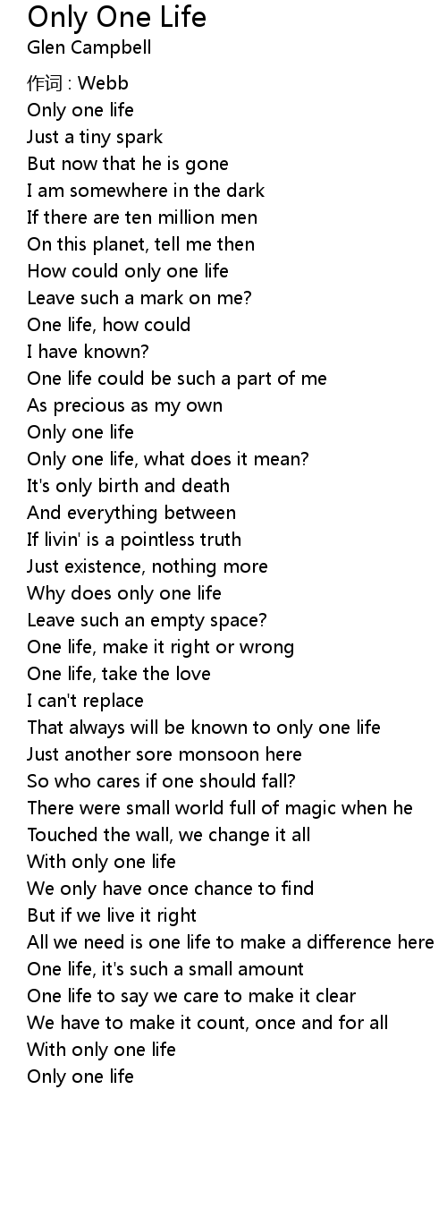 | Why does only one life | |