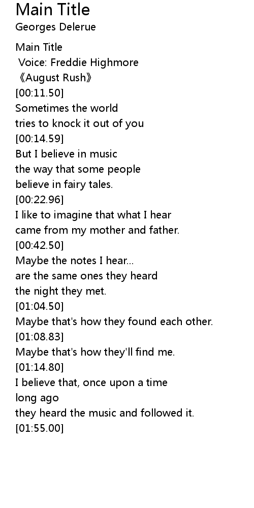 | [00:09.00] | August Rush |