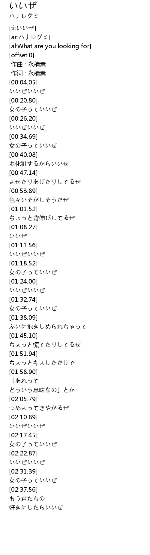 | [00:50.28] | よせたりあげたりしてるぜ |