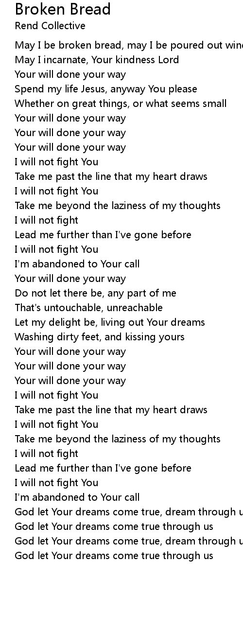 May I be broken bread, may I be poured out wine |
