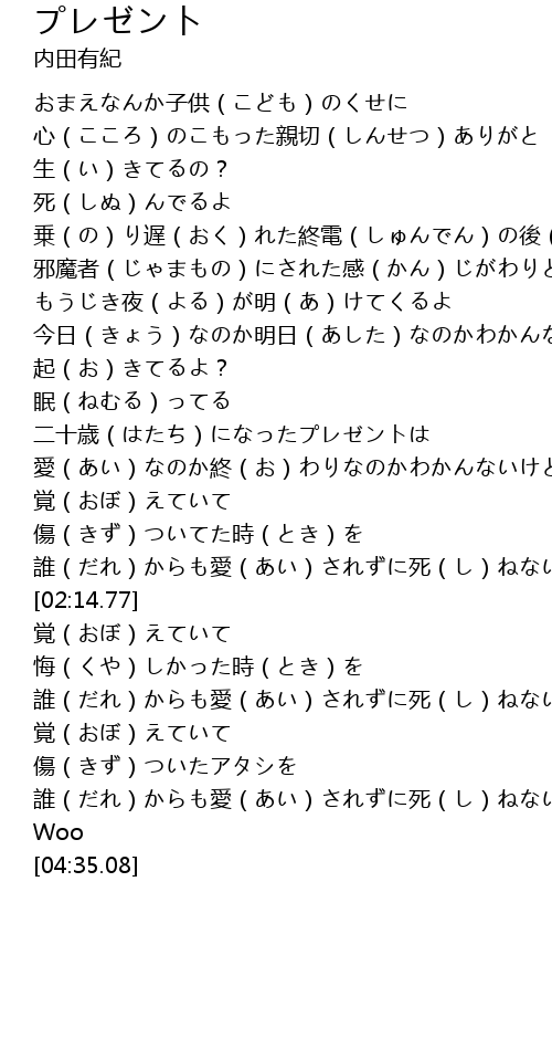 | [03:16.54] | 誰(だれ)からも愛(あい)されずに死(し)ねない Woo |