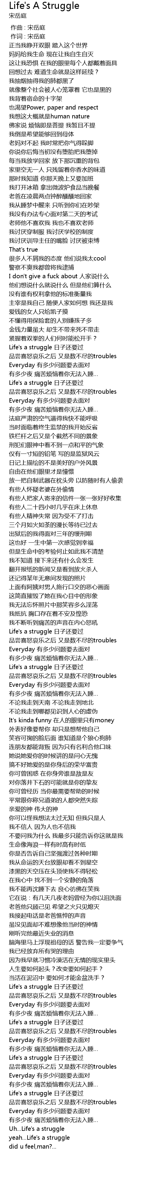 | [04:51.91] | Life' s a struggle rì zi hái yào guò |